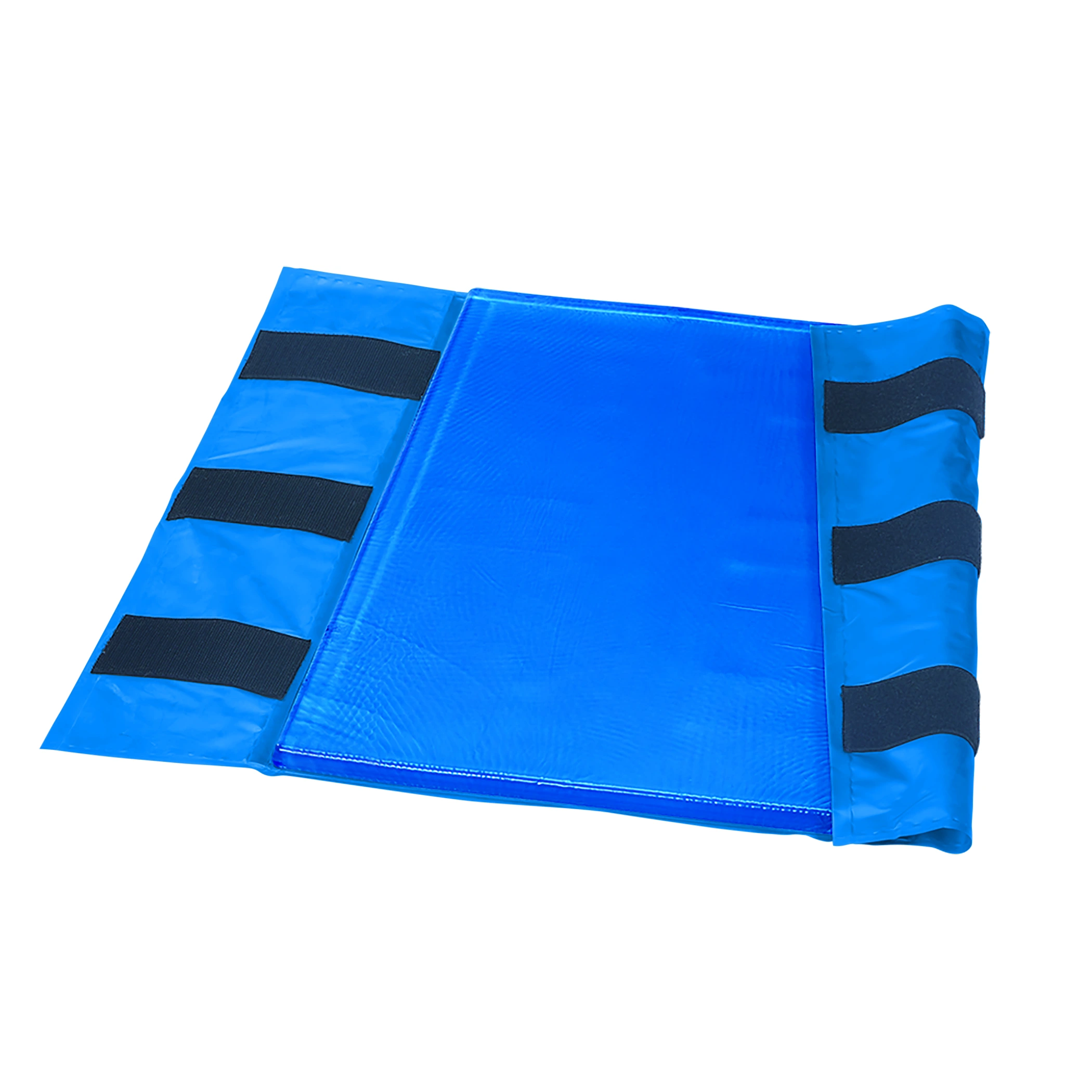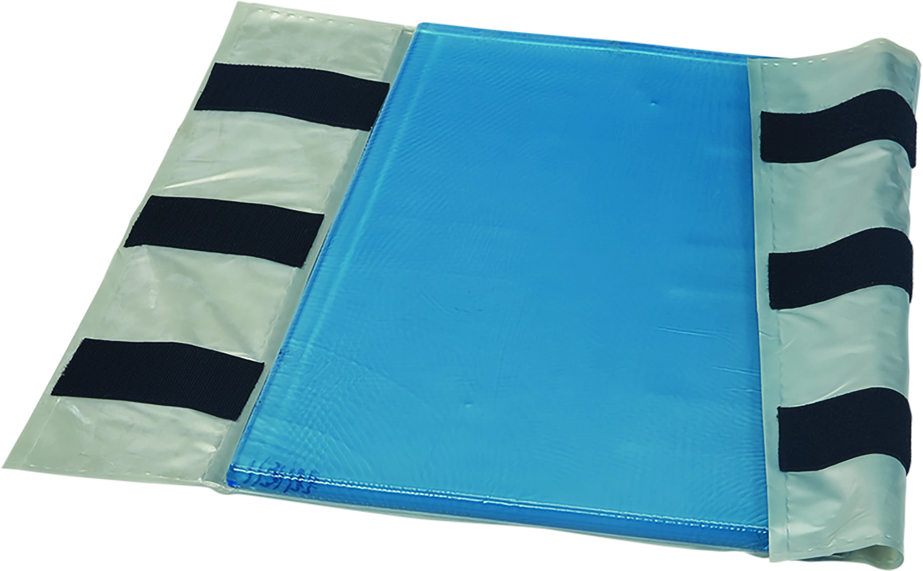 | Image Alt Text | AliMed AliBlue Gel Axillary Roll Cover, blue with four black straps for securing, designed for medical support and protection. |