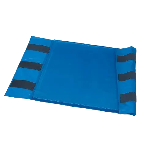 | Image Alt Text | Blue cover with black straps, designed for the AliMed AliBlue Gel Chest Roll. The cover is flat, showing straps on each side. |